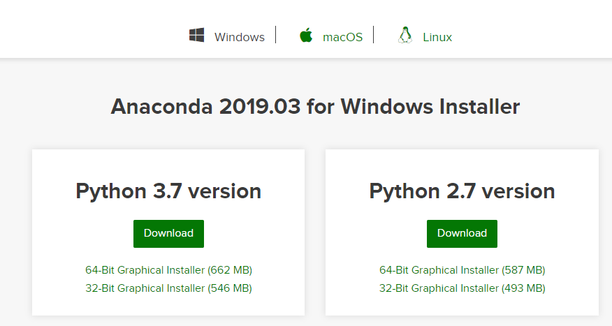 아나콘다의 경우에는 이곳(https://www.anaconda.com/distribution/)에서 다운받을 수 있다.